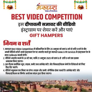 मरुधरा न्यूज एंड पीआर सर्विसेज द्वारा सोशल मीडिया इन्फ्ल्यूएंसर्स के लिए बेस्ट वीडियो कॉम्पिटीशन आयोजित की जाएगी। एमएनपीआरएस के सीईओ केशव आचार्य ने बताया कि मरुधरा बेस्ट वीडियो कॉम्पिटीशन में प्रतिभागिता के लिए इन्फ्ल्यूएंसर्स को 20 अक्टूबर को सायं 6 बजे से रात्रि 9 बजे के बीच अपनी वीडियो स्टोरी अपने इंस्ट्राग्राम पेज पर अपलोड करते हुए मरुधरा न्यूज एंड पीआर सर्विसेज के इंस्ट्राग्राम पेज के @mn_pr_service के साथ कोलीब्रेट करनी होगी। वीडियो अपलोड करने के 24 घंटे बाद, यानि 21 अक्टूबर 2025 को सायं 6 से रात्रि 9 बजे तक इसका आकलन किया जाएगा। इस दौरान सर्वाधिक व्यूज, लाइक, कमेंट तथा सर्वश्रेष्ठ कंटेंट और पिक्चराईजेशन श्रेणी के विजेताओं को गिफ्ट हैंपर दिए जाएंगे। वीडियो न्यूनतम एक मिनट का होगा। लाइक और कमेंट ऑर्गेनिक होना जरूरी है। सर्वश्रेष्ठ कंटेंट और पिक्चराईजेशन का निर्णय आयोजन मंडल द्वारा किया जाएगा।